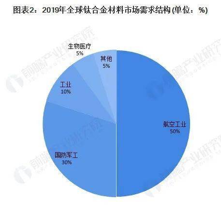 2、鈦合金材料主要應用于航天、軍工領域 在全球市場中,鈦合金材料主要應用于航空工業、國防軍工以及其他工業。其中,在航空工業的應用需求最大,約占50%,主要是用于飛機和發動機的制造。