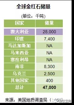 銳鈦礦(anatase;octahedrite) 由二氧化鈦組成的三種礦物中之一種。銳鈦礦的物理性質、產出條件和用途等都與金紅石相仿,與金紅石、板鈦礦互為同質異構,而且它本身還可以蝕變成金紅石。 我國鈦資源總量9.65億噸,居世界之首,占世界探明儲量的38.85%,主要集中在四川、云南、廣東、廣西及海南等地,其中攀西是中國最大的鈦資源基地,鈦資源量為8.7億噸。 中國探明的鈦資源分布在21個省(自治區、直轄市)共108個礦區。主要產區為四川,次有河北、海南、廣東、湖北、廣西、云南、陜西、山西等省(區)。 鈦磁鐵礦巖礦:主要礦床分布在四川省的攀枝花和紅格,米易的白馬,西昌的太和;河北省承德的大廟、黑山,豐寧的招兵溝,崇禮的南天門;山西省左權的桐峪;陜西省洋縣的畢機溝;新疆的尾亞;河南省舞陽的趙案莊;廣東省興寧的霞嵐;黑龍江省的呼瑪;北京市昌平的上莊和懷柔的新地。其中四川省表內儲量(TiO2 44256.32萬噸)占全國同類儲量(TiO2 46522.83萬噸)的95.1%,河北省(TiO2 1544.46萬噸)占3.3%,陜西省占0.46%,山西省占0.35%。 金紅石巖礦主要礦床分布在湖北省棗陽的大阜山;山西省代縣的碾子溝;河南省新縣的楊沖;山東省萊西縣的劉家莊。其中湖北省金紅石(TiO2)表內儲量(534.43萬噸)占全國同類儲量(750.86萬噸)的71.2%,山西省(154.79萬噸)占20.6%,陜西省(44.4萬噸)占5.9%。 我國探明的鈦資源分布在21個省(自治區、直轄市)共108個礦區。主要產區為四川,次有河北、海南、廣東、湖北、廣西、云南、陜西、山西等省區。 |