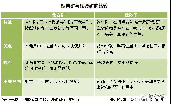 鈦在地球上儲量十分豐富,地殼豐度0.61%,其含量比常見的銅、鎳、錫、鉛、鋅都要高,已知的礦物約有140多種,但現具有開采價值的僅十余種。已開采的鈦礦物礦床可分為巖礦床和砂礦床兩大類。 鈦巖礦的主要存在形式為鈦鐵礦和鈦磁鐵礦,工業主要應用形式為鈦鐵礦。 主要含鈦礦物之一。三方晶系,晶體少見,常呈不規則粒狀、鱗片狀、板狀或片狀。顏色鐵黑或呈鋼灰色,條痕鋼灰或黑色,當含有赤鐵礦包體時,呈褐或褐紅色。金屬至半金屬光澤,貝殼狀或亞貝殼狀斷口。中國四川攀枝花鐵礦中,鈦鐵礦分布于磁鐵礦顆粒之間或裂理中,并形成大型礦床。鈦鐵礦的化學成分與形成條件有關。產于超基性巖、基性巖中的鈦鐵礦,MgO含量較高,基本不含Nb、Ta;堿性巖中的鈦鐵礦,MnO含量較高,并含Nb、Ta;產于酸性巖中的鈦鐵礦,FeO、MnO含量均高,Nb、Ta含量亦相對較高。