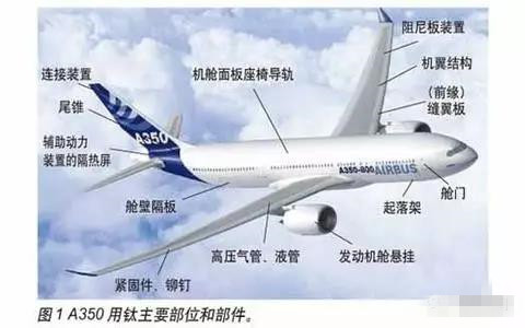航空航天領域 航空航天領域用鈦大國集中在西方國家,尤其是美國,60%的鈦材都應用到這個領域。亞洲國家,日本和中國在此領域中鈦的投入量均在10%左右。但是近年來隨著亞洲航空航天的飛速發展,鈦在航空航天領域的消費量將會隨之增長。從全球角度來看,航空業對鈦市場起著決定性的作用,從歷史上看,鈦行業大的周期輪回都和航空業的冷暖密切相關。 2011年,全球鈦材產量達到14.8萬噸,其中商用航空用鈦材約6.4萬噸,未來全球經濟增長對航空運輸的需求量依然巨大,預計未來20年新增飛機需求約在3萬架左右,同時,新型飛機對鈦的需求量高于老式飛機,預計20年內商用飛機對鈦材的平均需求量將達到40噸/架;據此推算,未來20年全球商用航空領域新增鈦材需求約120萬噸,年復合增長率約17%,平均每年新增6萬噸鈦材需求,民用航空用鈦材領域將呈現快速增長。軍用航空領域也將出現新的機會;由于全球地緣政治形勢緊張,全球各國軍費開支增加,軍用航空領域也有望出現新的需求。 民用客機 鈦合金在飛機的主要用途如下: