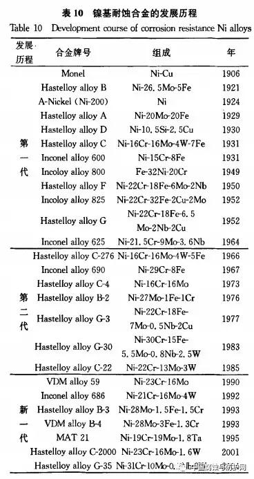 3.2國內(nèi)概況 我國自20世紀50年代開始仿制、改進國外牌號的鎳基合金,到70年代末已有10多種牌號。80年代以后,研制有了較大進展并有了一些新牌號的鎳基合金。1984年重慶儀表材料研究所根據(jù)苛刻環(huán)境下工業(yè)過程檢測與控制儀表對耐蝕合金的需要,研制出了Ni-Cr-Mo耐蝕合金,定名為3YC24合金。1986年鋼鐵研究總院發(fā)明了適用于沸騰氫氟酸液、氣相和濕氯、濕氟以及鹽酸和硫酸等苛刻腐蝕環(huán)境的鎳基耐蝕合金,特別是在沸騰氫氟酸中,其耐蝕性比Hastelloy C-4和Hastelloy C-267提高J,100倍。1994年公布的鎳基耐蝕合金牌號有23種、高溫合金牌號有24種。部分牌號與國際牌號的對應如表11所示。 國內(nèi)Monel合金的使用較少,特別是Monel合金閥門幾乎全部靠進口。錦州鐵合金股份有限公司開發(fā)了可替代進口產(chǎn)品的Monel合金。Inconel 600在我國的生產(chǎn)和應用尚處于起步階段,應用范圍有限,僅限于少數(shù)引進設備及零部件。中國化學工程第十四建設公司承建的浙江衙州臣化(集團)公司氟化工程,部分工藝管道采用了美國進口的In-conel 600合金管道。為了打破發(fā)達國家的壟斷,四川川投長城特殊鋼股份有限公司成功地開發(fā)出Incoloy 800、Incoloy 800H、Inconel 625、Inconel 690、NSl41等耐蝕合金的板、管等犁材。 4展望 鎳基耐蝕合金因其良好的力學性能、加工性能及耐腐蝕性,越來越廣泛地應用于工業(yè)領域。我國有豐富的鎳資源, 隨著經(jīng)濟的快速發(fā)展,鎳合金將保持旺盛需求。因此,鎳基合金的研究開展對充分利用金川集團公司鎳鈷資源的優(yōu)勢、拓寬公司特種合金材料廠的產(chǎn)品領域、提升企業(yè)在鎳合金制品深加工領域的能力、擴大產(chǎn)品的市場覆蓋面具有重要的經(jīng)濟和實用意義。筆者認為今后鎳基耐蝕合金應在以下幾個方面加強研究。 (1)應加快開發(fā)新型鎳基耐蝕合金,加強對其應用領域拓寬的研究; (2)針對工程領域,深入研究相關工業(yè)設備制造的成型、焊接、熱處理等關鍵工藝參數(shù); (3)研究更多復雜、苛刻腐蝕條件下的腐蝕行為與機理。 |
